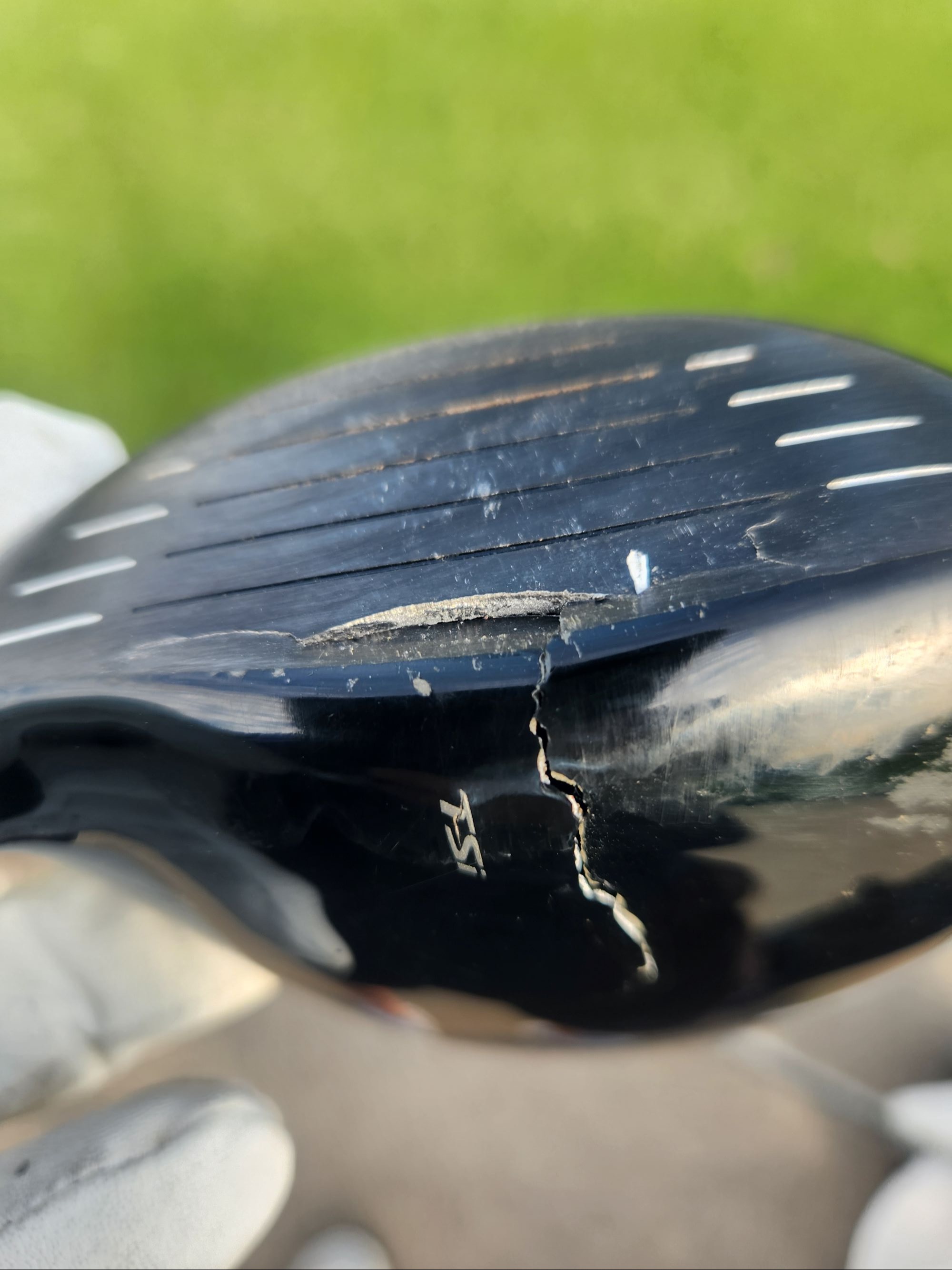 During a recent business trip to Houston, I signed up for a US Am Tour event held at August Pines GC in Spring, TX. I have played this course before and was not happy with my performance. I thought this might be my chance, but before I started, I needed to spend a little time warming up. I was really happy with my ball striking, then suddenly I was having trouble with my 3-wood. As you can see from the included picture, it’s hard to hit a 3-wood when the face is cracked. This was not a good sign before I even got to the first tee.